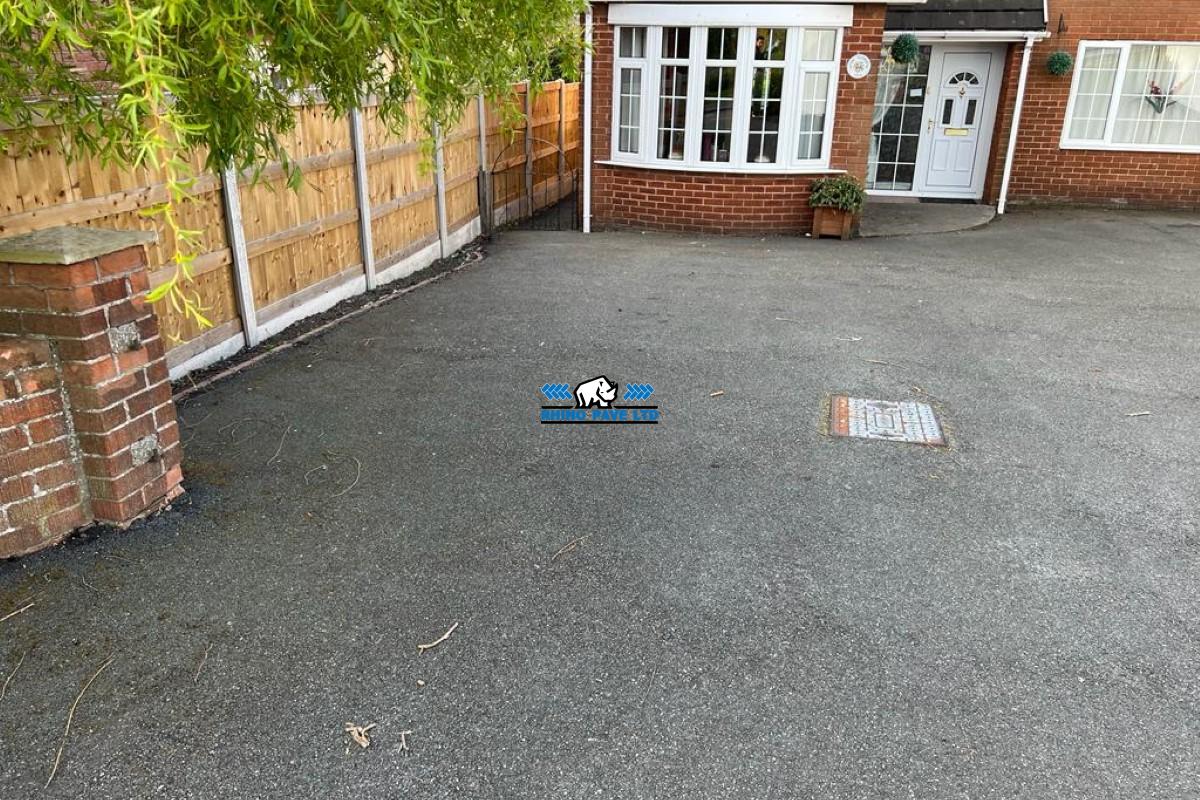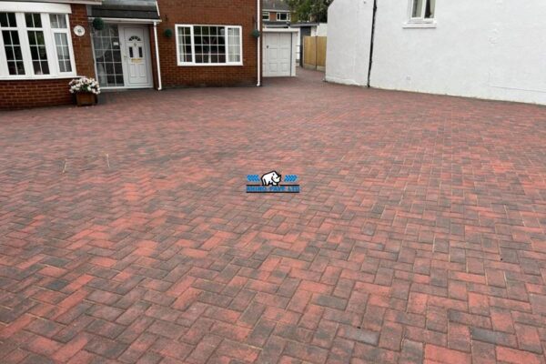 Driveway replacement completed by Rhino Pave LTD in Buckley. New driveway fitted with block paving and new edging kerbs.